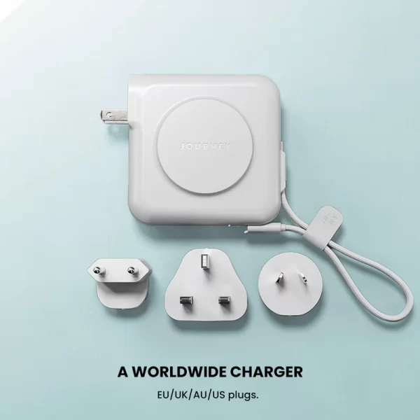 Power Bank Mode: 2 x USB-C & wireless charging max output: 35W - Universal Plugs: US built-in plug + EU, AU, UK convertible plugs included