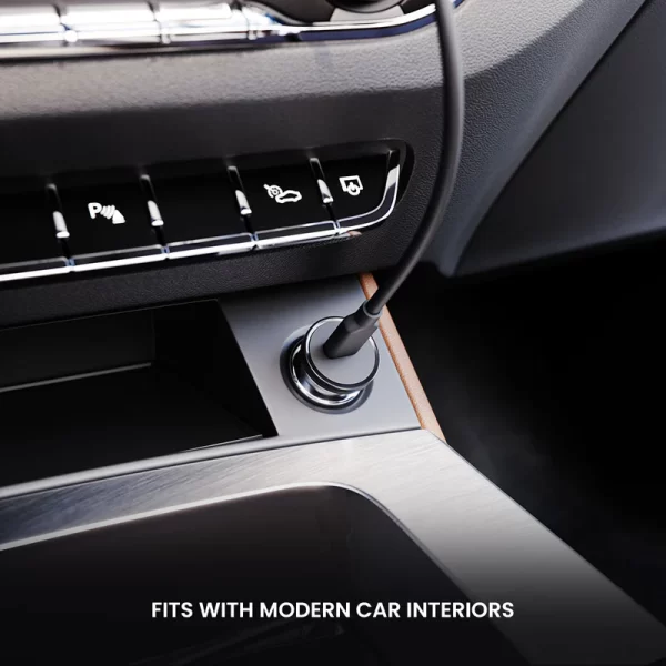 - The 20W car Charger boasts a compact design. It seamlessly fits into the car’s power socket.